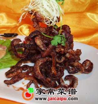 2、炒锅置旺火上,下生油烧至八成热时,放入鳝丝炸,并不断用漏勺捞起轻颠,要抖散入锅,以防鳝丝相互粘结。炸约3分钟,即用漏勺捞出,待油锅里的油温降到五成热时,再将鳝丝投入油锅,如此复炸三四次,使鳝体基本排尽水分,里外肉质从硬化趋于脆化(要避免外层肉质枯焦)。