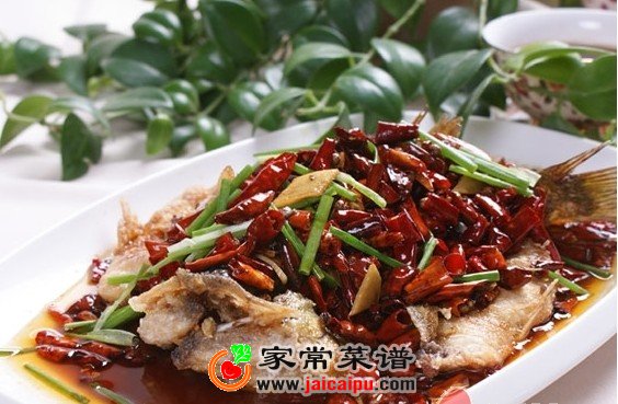 ②下油二汤匙,爆香葱,辣椒粉,下鱼,下酒半汤匙炒匀勾芡,再炒数下上碟;
