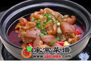 1、将猪脚烫尽毛,刮洗干净,开边砍成3厘米大小的块,入水锅内焯水,去尽血污后过凉待用。
