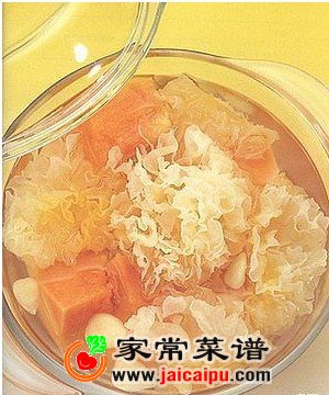 主料:雪花梨350克,木瓜300克,牛奶500克 调料:蜂蜜5克 制作方法: 1。雪梨、木瓜分别用水洗净,削去外皮,去掉核、瓤,切成块。 2。雪梨、木瓜块放入炖盅内,加入鲜牛奶、清水,