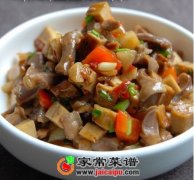 原料:尖椒,鸡胗,葱 调料:盐,生抽,味精,糖,料酒 制作方法: 1、鸡胗洗净切片,点入料酒味一下。 2、炒锅葱花爆锅。 3、加入鸡胗,炒变色,加入半勺糖和生抽。 4、翻炒数下...