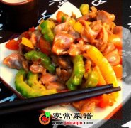 原料:鸡胗、红、黄彩椒、苦瓜 调料:盐、小粉、酱油、料酒、鸡精、花椒粉、姜粉、郫县豆瓣酱 制作方法: 1、鸡胗切小片,用盐,小粉,酱油,料酒,花椒粉,姜粉腌一会儿。 2、...