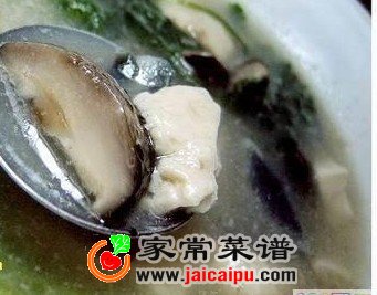 3。冬菇、姜片加水先烧开后加入皮蛋煮片刻以后依次加入鱼片、豆腐煮熟后加入适量的盐、鸡精、胡椒粉、油调味。