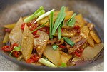 1、将锅置于旺火上,放入色拉油烧热,放入豆瓣酱炒香,放入白卤汁、腐乳汁、醪糟汁(江米酒)、酱油、葱汁、姜汁;