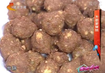 4、待油温六七层热时将丸子炸至定型后捞出,待油温升至七信息层热时,复炸至酥脆弱。