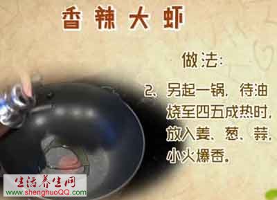 1、在锅中倒油烧至八九成热时,放入小龙虾煸炒至鲜红色后,捞起备用。