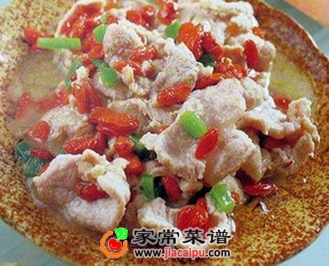 主料:猪里脊肉200克。嫩杞子100克,蛋清1个,味精1。5克,绍酒2克,清汤100克,湿淀粉10克,熟猪油750克(耗80克),精盐1克。