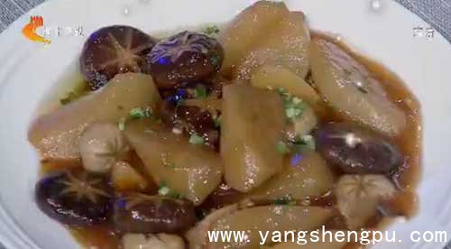 1、萝卜去皮切块,五花肉切大块,口蘑、香菇表面打花刀备用。