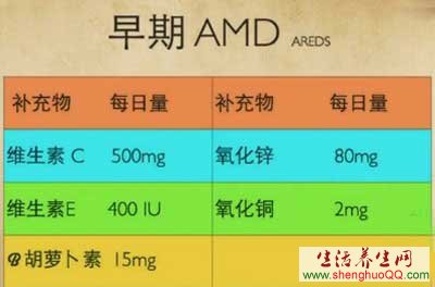 老年性黄斑变是现在有很好的药物治疗,黄斑裂孔和黄斑前膜都需要手术治疗,手术的风率低,成功率高。在老年性黄斑变性的早期,吃一些含锌的维生素可以减缓老年黄斑变性的发展,如下图一所示(AMD为老年黄斑变性的缩写)。便是单独吃锌或单独吃维生素,效果都没有同时吃维生素和锌好,如图二所示。