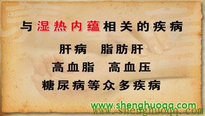 与湿热内蕴相关的疾病有:肝病、脂肪肝、高血脂、高血压、糖尿病等众多疾病。