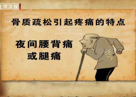 夜间腰背痛:夜间腰背痛有两种可能,大部分人是因为骨质疏松,还有一部分人是骨转移。骨质疏松是全身性的疾病,疼痛一般都是对称的,单侧的疼痛不是骨质疏松。
