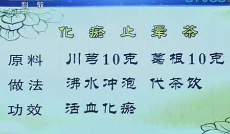 头部受伤后可常喝川芎茶缓解头晕,川芎行气活血化瘀,能缓解头晕伴有头痛的症状。