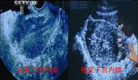 如发现月经有异常是首选的检查是B超,B超检查可以了解子宫大小、子宫内膜厚度、有无回声不均或宫腔内赘生物,有无肌层浸润及其程度等,其诊断符合率达80%以上。由于子宫内膜癌患者肥胖者甚多,因此经阴道超声比经腹部超声更具优势。由于B超检查方便及无创,因此成为诊断子宫内膜癌最常规的检查,也是初步筛查的方法。