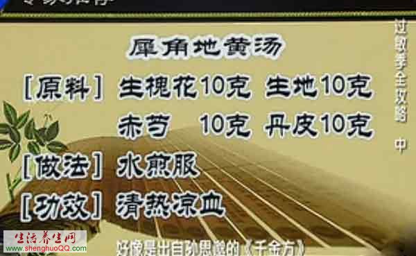 中医认为皮肤容易过敏的主要原因是血热,春季风邪当令,风邪容易夹热侵犯人体引起过敏。容易皮肤过敏的人可多吃生槐花,生槐花具有清热凉血的功效,专家推荐“犀角地黄汤”。专家推荐缓解皮肤过敏的药膳-赤小豆薏仁汤。缓解皮肤过敏的食物-乌梅。
