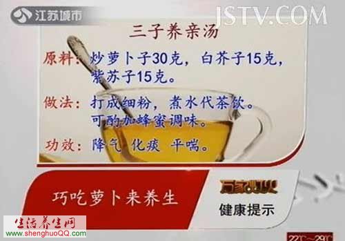 【用法】莱菔子、紫苏子、白芥子各9克,熬水喝或者冲服都是可以的。