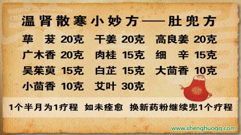 专家还推荐另外一个温肾散寒的小方法:将下列药物研成面,做成一个肚兜。