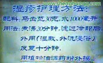 湿状湿疹:养生堂哈刚老师讲述:凡是遇到糜烂、起水泡、渗出的这种皮肤损害包括湿疹,不要上药面直接往上糊,可用马齿苋来治疗这类的皮肤病。30克马齿苋加1000毫升水,煮沸20分钟,滤过冷却后外用(湿敷、外洗浸浴),反复10分钟,用植物油调药粉外擦(一定要冷却后使用)。使用方法:晾凉后用纱布或干净口罩,在水里浸透了,挤一挤(以不滴水为准)敷在患处,2~3分钟后重新浸水再敷,这样反复冷湿敷10~15分钟。敷完以后要往上擦药也不能用药粉,要用油调药粉(调成稀的芝麻酱的程度)才行,这们可以防止药粘疮面。用什么药粉呢?药店如果黄柏粉、黄连粉都可以用,用这药粉与植物油或橄榄油调成稀芝麻酱的程度,外敷。当你要擦下的时候还可以用马齿苋水反复敷的方法来擦下,如果还擦不下可用布沾油反复敷的方法擦下,可擦得干干净净。