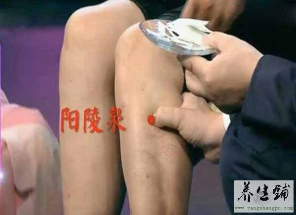 阳陵泉穴位于人体的膝盖斜下方,小腿外侧之腓骨小头稍前凹陷中。(即:在小腿的外侧,膝关节下方的外侧有一个高点(腓骨小头),从高点的前下方大概一寸左右有一个凹陷。)
