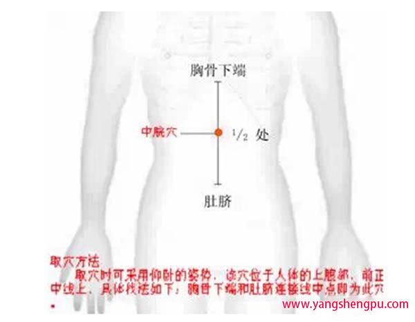 【刺灸法】直刺0.8~1.2寸;艾炷灸5-10壮;或艾条灸15-30分钟。特别提醒:中脘穴孕妇禁止按摩。