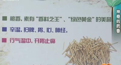 檀香临床常用于胸腹部各脏器疾病引起的气滞胀闷,以改善症状。由于芳香宜人,需开胃解闷者,较易接受。