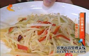主料:土豆 调料:红油,盐,味精,香油,白糖,香菜。 制作方法: 1、将土豆切成细丝,锅内放水烧热,土豆丝放入锅内烧成8分熟捞出,过冷水放入盆中。 2、放入红油,添加盐、