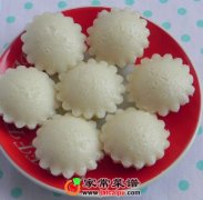 材料:粘米粉150克,酵母3克,糖50克,水165ML 制作方法: 1、粘米粉,酵母,糖混合,加水混合均匀。 2、放置温暖处发酵2小时至2倍大,菊花挞模刷油,倒入发酵好的面糊。 3、水开后...
