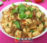 材料:豆腐切丁(medium硬度)、牛肉切末、豆瓣酱、盐、酒、干红辣椒碎、青蒜、姜末、花椒粉、水淀粉、酱油、少许糖。 做法: 1、锅内加少许菜油,大火加热,油热后依次加入豆瓣...