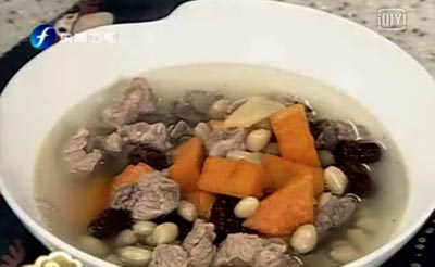 主料:猪尾750克,木瓜800克,花生仁(生)120克 辅料:枣(干)20克 调料:盐3克,酱油5克 制作方法: 1。烧刮净猪尾上的余毛,斩件。木瓜去皮,切开两边,去掉瓜内之核,洗过,亦
