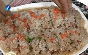 2、取盛盘,抹上一层油,腌制好的排骨均匀裹上一层泡过的糯米,蒸锅水烧开,排骨移入锅里,大火蒸制40到1个小时,起锅撒入胡萝卜末和葱末即可;