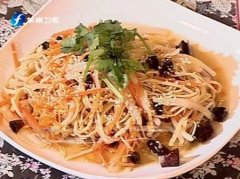 【食材】豆腐皮、胡萝卜、白菜 【调料】干辣椒、白糖、盐、香醋、香油 【制作步骤】 1、豆腐皮切丝,锅里水烧开,豆腐丝,胡萝卜丝和白菜帮丝分别入锅氽水,捞出; 2、热锅热油...