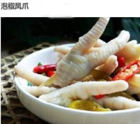 【食材】鸡爪、生姜、泡椒 【调料】蜂蜜、白醋 【制作步骤】 1、凤爪事先 焯水,捞出剞刀,放入锅里过热水,捞出,泡入冰水过凉; 2、热锅热油,炒香姜丝、泡椒、盛出,倒到沥干...
