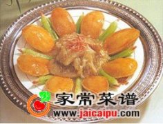 主料:干鲍鱼(8只),白萝卜,鸽蛋(12只),熟火腿,海参,白糖,鱿鱼,葱姜,鲜菇,菱粉,冬菇,黄酒,熟鸡,胡椒粉,菜心,鸡汤,冬笋,硼酸。 特点:色香味俱佳,适宜作筵...