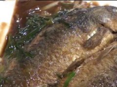 食材调料 鲫鱼 、老抽、 葱白 、料酒、盐、糖、水、姜粒。 制作步骤 1、先将鲫鱼抹老抽上色,下锅炸至表皮绷紧,关火出锅。 2、另起锅放底油,把整条葱白切丝后放在锅里煎出葱香...