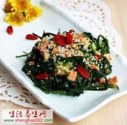 材料:新鲜蒲公英500克,熟芝麻粉20克。 方法:新鲜蒲公英拣杂,洗净,保留根头部分,入沸水锅中氽透,捞出码齐,切成3厘米长的段,放入盘中,匀布熟芝麻粉,加酱油、红糖、...