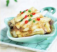【食材】长茄300克 大蒜3瓣 【调料】香醋1大匙 白糖1/2大匙 香油1小匙 鸡精1/2小匙 盐适量 【制作步骤】 1、茄子洗净(可不去皮),切成约1.5cm粗的长条。放入盘中,上蒸锅蒸熟。取出...