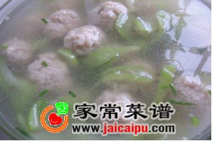 2。烧滚一锅水,加入姜片,收中火,将拌好之猪肉、鱼肉做成小丸子,放下滚水中浸熟后,加入丝瓜、草菇,再滚时加入适量盐调味,便可饮用。