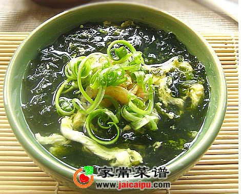 2。金钩用温水略浸,洗净,紫菜与汤汁同烧,汤滚即可放入全部用料,再滚即可食用。