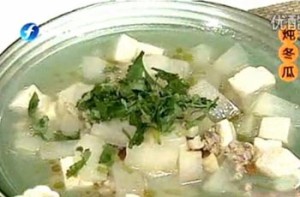 冬瓜鲩鱼汤。原料,做法,功效,出处。原料冬瓜200克、鲩鱼150克(鱼尾部较好)。做法鲩鱼去鳞洗净,用植物油煎至黄色。加开水适量,再下冬瓜,文火煮30分钟。调味食用。功