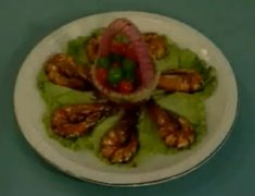 烤大虾的材料:鲜对虾750克,葱段15克,姜片10克,清汤100克,味精5克,熟猪油25克,白糖50克,精盐3克,料酒4克,香油2克。 烤大虾的做法: 1.炒锅内加熟猪油中火烧至六成熟时,将葱...