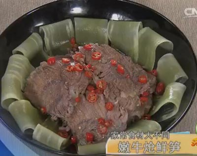 (《天天饮食》 20141015 嫩牛炝鲜笋)主持人:王雪纯、石万荣