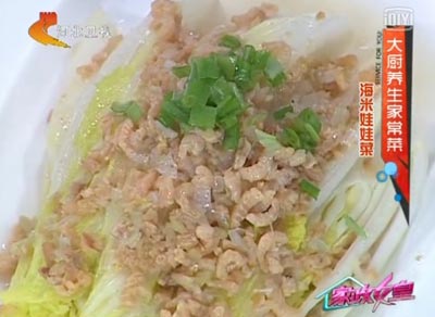 家政女皇生活小妙招视频,主持人;方琼、程成,视频的第17分后开始讲海米娃娃菜的做法