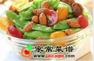原料:美国大杏仁20颗、圣女果(红/黄)20个、话梅5颗、荷兰豆250克
