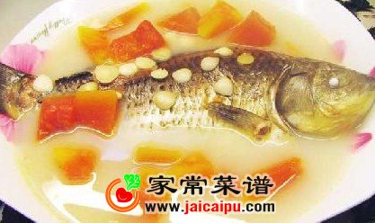 木瓜500-600克(约1个)、莲子20克、眉豆20克、鲫鱼1-2条(约500-600克)。