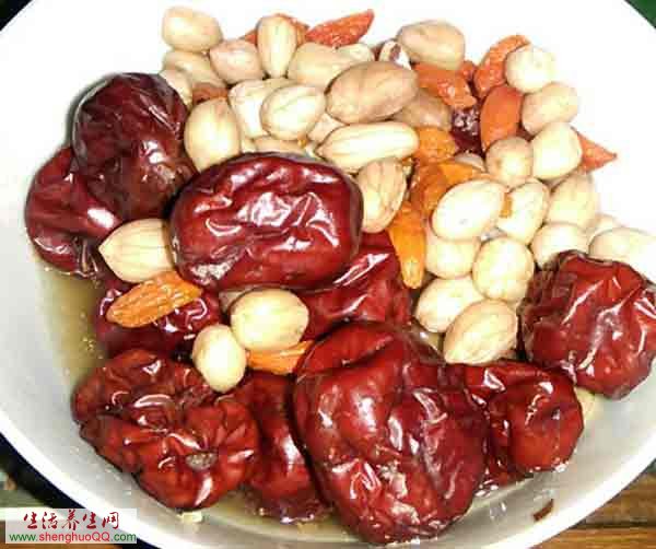 制法:1、花生剥壳,连衣煮熟后碾成泥状。龙眼肉去壳,去核,洗净,晒干后岛如泥。2、大枣去核,洗净,加水500毫升,浸泡30分钟,置大火上煮沸,改小火煎1小时,取出枣肉捣烂,再与花生泥及龙眼肉泥一并煎熬至糊状。