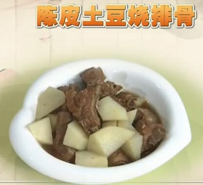 (《饮食养生汇》 20140627视频从第26分钟开始讲陈皮土豆烧排骨的做法)