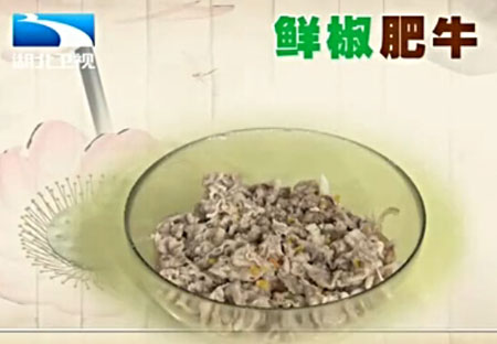 (《饮食养生汇》 20140508视频从第25分开始讲鲜椒肥牛的做法)主持人:刘仪伟、胖胖