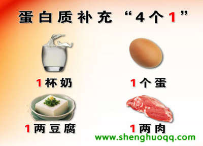 怎样才能知道每天吃的食物中,蛋白质是否达标呢?于教授告诉我们,蛋白质补充有“4个1”的原则。