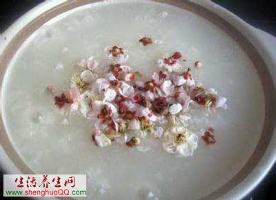 【制作】 以米煮粥,待1-2沸,入芍药花再煮粥热,加入白糖即成。